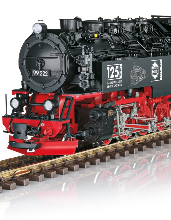 LGB gratuliert den Harzer Schmalspurbahnen quasi schriftlich auf dieser Lok und einem weiteren Personenwagen. Die Vorbilder wurden am 27. März 2024 der Öffentlichkeit vorgestellt und werden das Jubiläumsjahr begleiten.