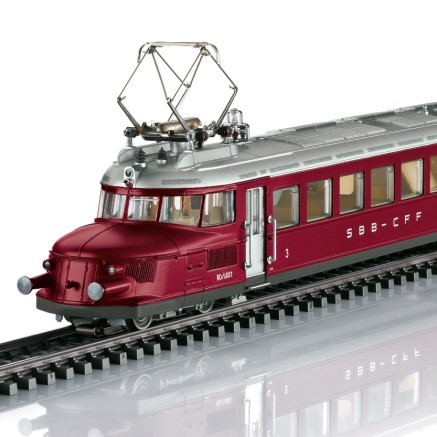 Zum Jubiläum der Oensingen-Balsthal-Bahn erschient der im Vorbild frisch aufgearbeitete Museumstriebswagen der Bauart Rce 2/4 in der aktuellen Ausführung der Epoche 6 der OeBB.