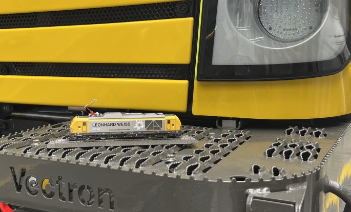 Auch das Göppinger Gleisbauuntenehmen LEONHARD WEISS hat seit September 2023 einen solchen Dual-Mode Vectron der Baureihe 248 angemietet und setzt ihn vor Bauzügen ein.