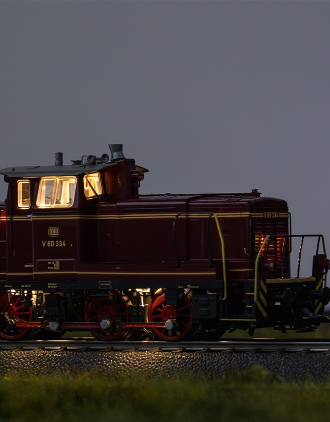 Die neue V 60 lässt hinsichtlich Detaillierung und Funktionen kaum Wünsche offen. Feine - teils lackierte - Griffstangen, Nachbildung des Dofa-Ofens, Nachgebildeter Führerstand, bewegliche Nachbildung des Schmierpumpenantriebs (Stange) und maßstäbliche Laternen auf den Bühnen sind nur einige Details. Funktionen wie Fahrwerks- und Führerstandsbeleuchtung, vorbildgerechte Lichtwechsel, digitale Telexkupplungen, authentisches Fahrgeräusch viele weitere Geräuschfunktionen geben der kleinen Lok ein eindrückliches Spielerlebnis fast wie beim Vorbild.