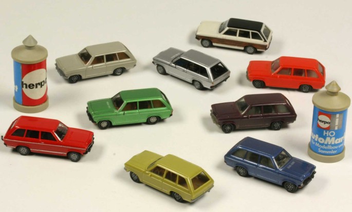 Auf der Spielwarenmesse im Januar/Februar 1978 präsentiert Herpa seine Erstlinge, die Sechslinge sind: BMW 633 CSi (E24), Opel Ascona A Voyage, Porsche 924, VW Scirocco GTI, Audi 100 (B2) GL 5E zivil und als Taxi, Ford Capri III 3.0 Ghia.