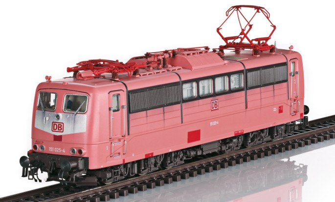 Die Lokomotiven der Baureihe 151 waren in ihrer Einsatzzeit nicht allzu intensiv gepflegt worden und wurden auch nicht so regelmäßig nachlackiert. Die orientrote Grundfarbe der Maschinen - die stark zum Ausbleichen neigte - tat ihr Übriges zum teils maroden Erscheinungsbild der Loks. Im TRIX-Programm erscheint nun mit der 151 025-4 ein Modell Baureihe, das einen solchen Betriebszustand um ca. 1998 darstellt. Das Modell ist sowohl ausgeblichen Lackiert als auch aufwendig gealtert mit Ausbesserungsstellen nachgearbeitet worden. Dabei ist die Lok technisch auf dem neuesten Stand! Hochdetailliert und mit zahlreichen digitalen Raffinessen lässt sie wohl kaum Wünsche offen. Als besondere Features sind die digital schaltbare Anfahrlampe und die heb- bzw. senkbaren Stromabnehmer zu erwähnen.